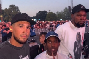 还搁一块呢杜兰特与前队友布克同框现身伦敦Wireless音乐节